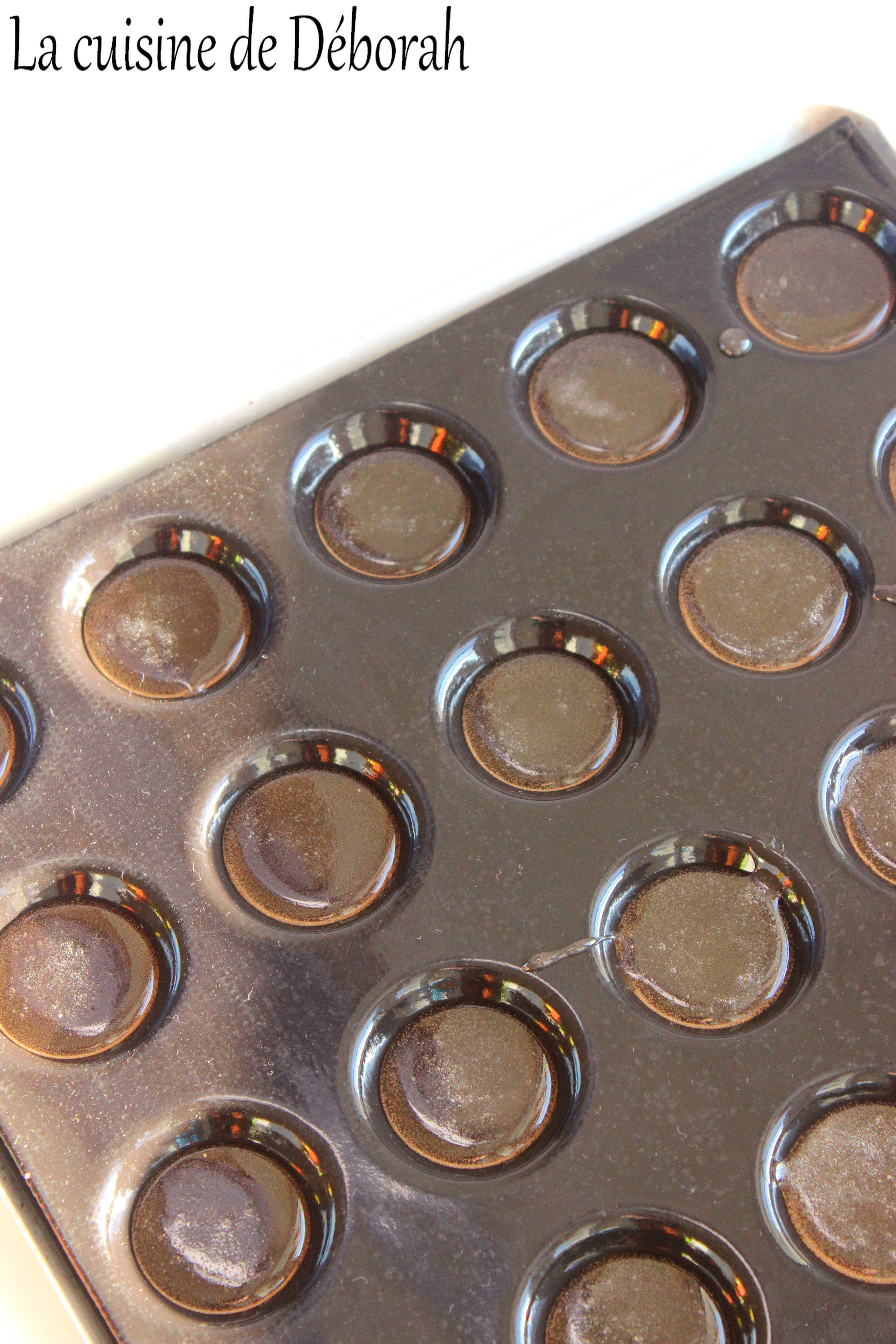 Placez votre moule au frais pendant 3h au moins, jusqu’à ce que les bonbons n’attachent plus trop au doigt si vous les touchez.