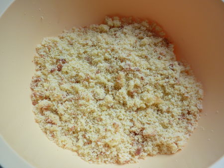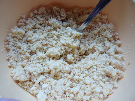 Emiettez le quatre quart au dessus d’une saladier avec les doigts.