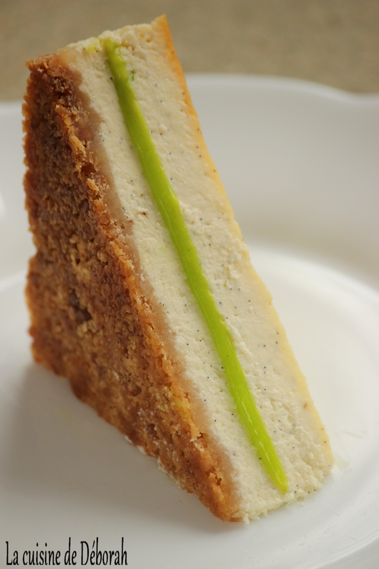 Voici le club-chessecake vanille et citron vert, ma recette gagnante au nouveau concours du magazine Fou de Pâtisserie qui nous demandait de revisiter le cheesecake!