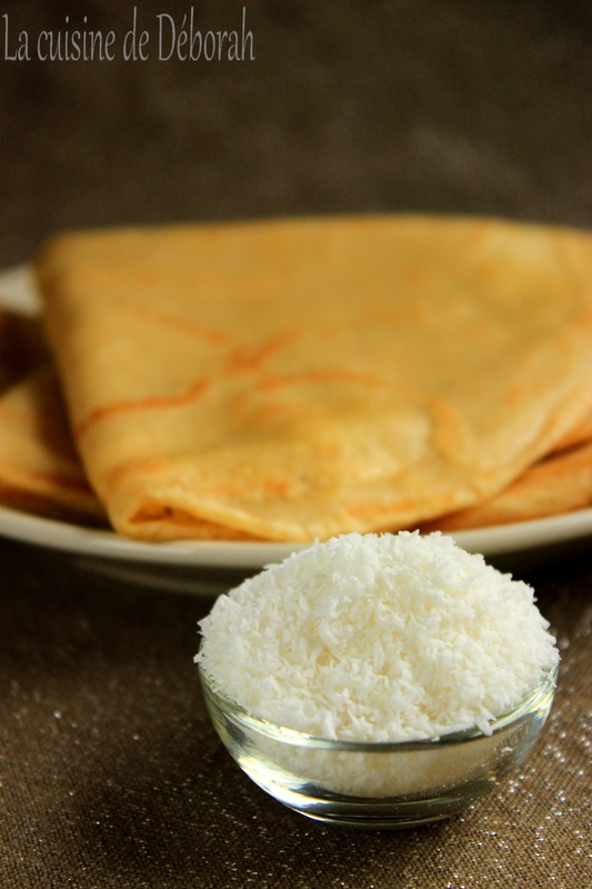 Pour changer un peu des crêpes traditionnelles, je vous propose aujourd’hui une recette de crêpes au lait de coco.