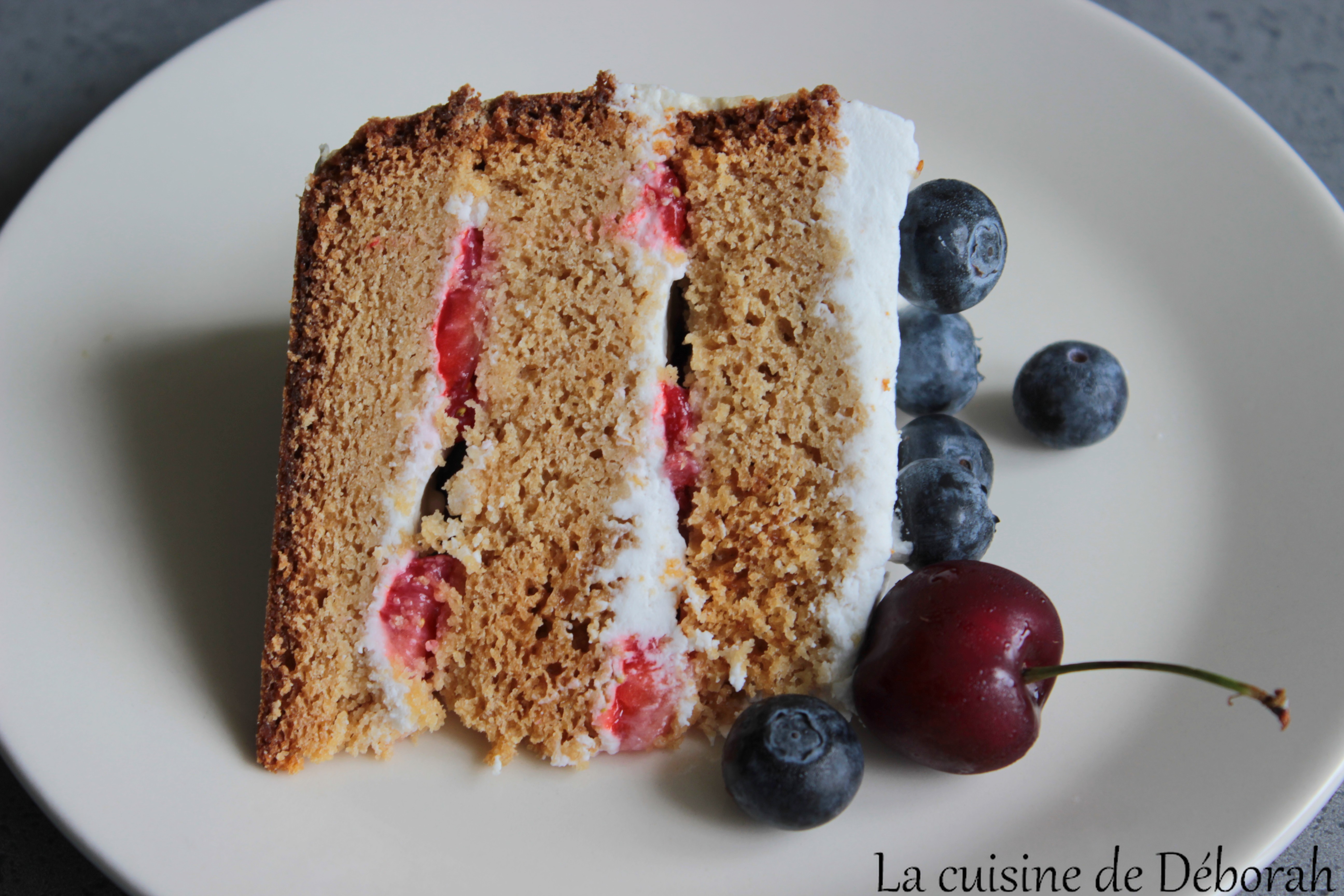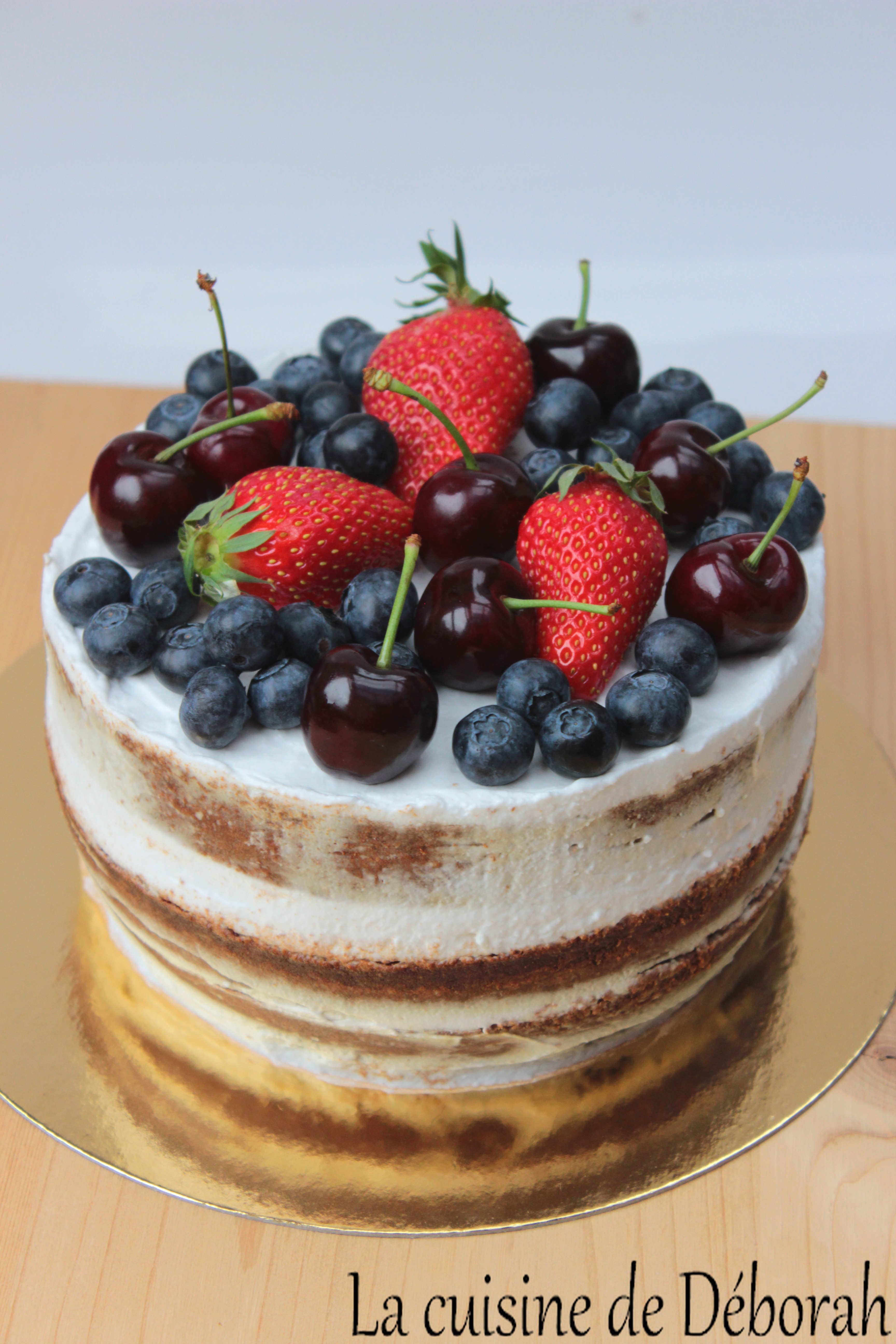 gâteau, sans produits laitiers, Chantilly coco, naked cake, molly cake, fraise, myrtilles, cerise, Chantilly, noix de coco, fruits rouges