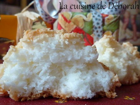 2 blancs d’oeufs, 100g de sucre glace, 125g de noix de coco