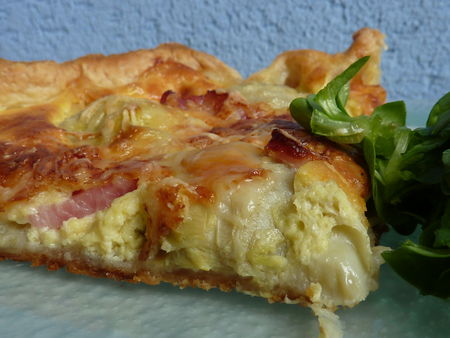 Une tarte artichauts, comté et lardons, improvisée un midi avec ce que j’avais à la maison.
