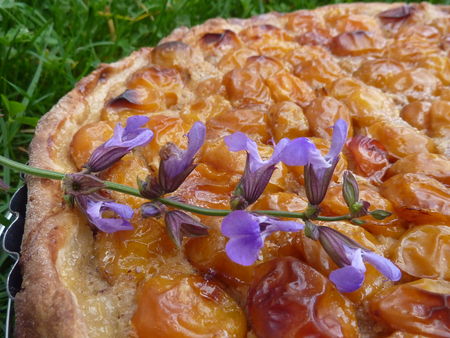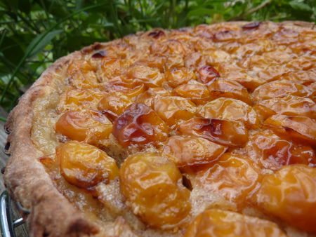 Celle-ci est faite avec une pâte sans beurre et les mirabelles sont posées sur une crème aux amandes et aux noisettes.