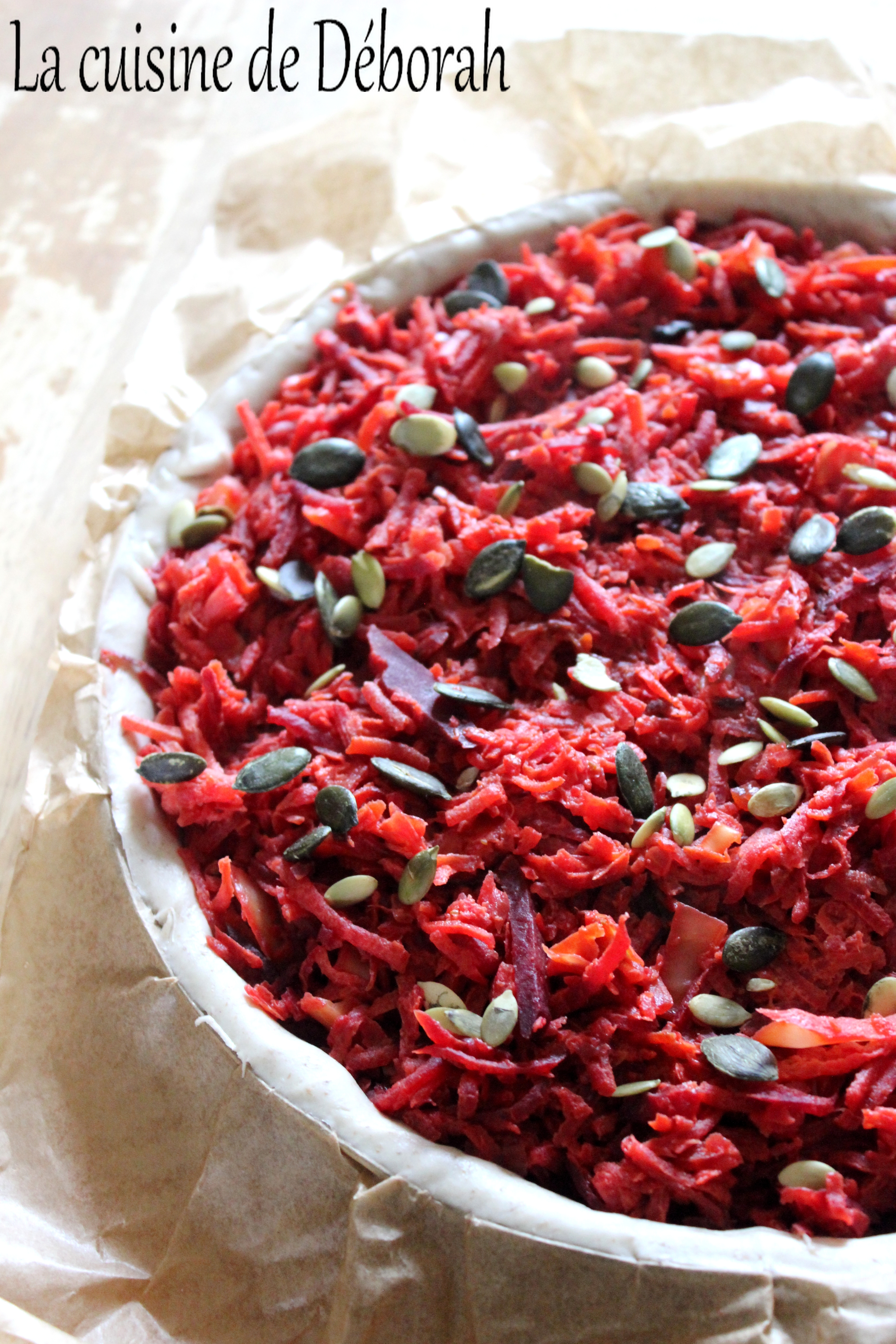 Servez cette tarte choux raves, betteraves et carottes avec une salade verte.